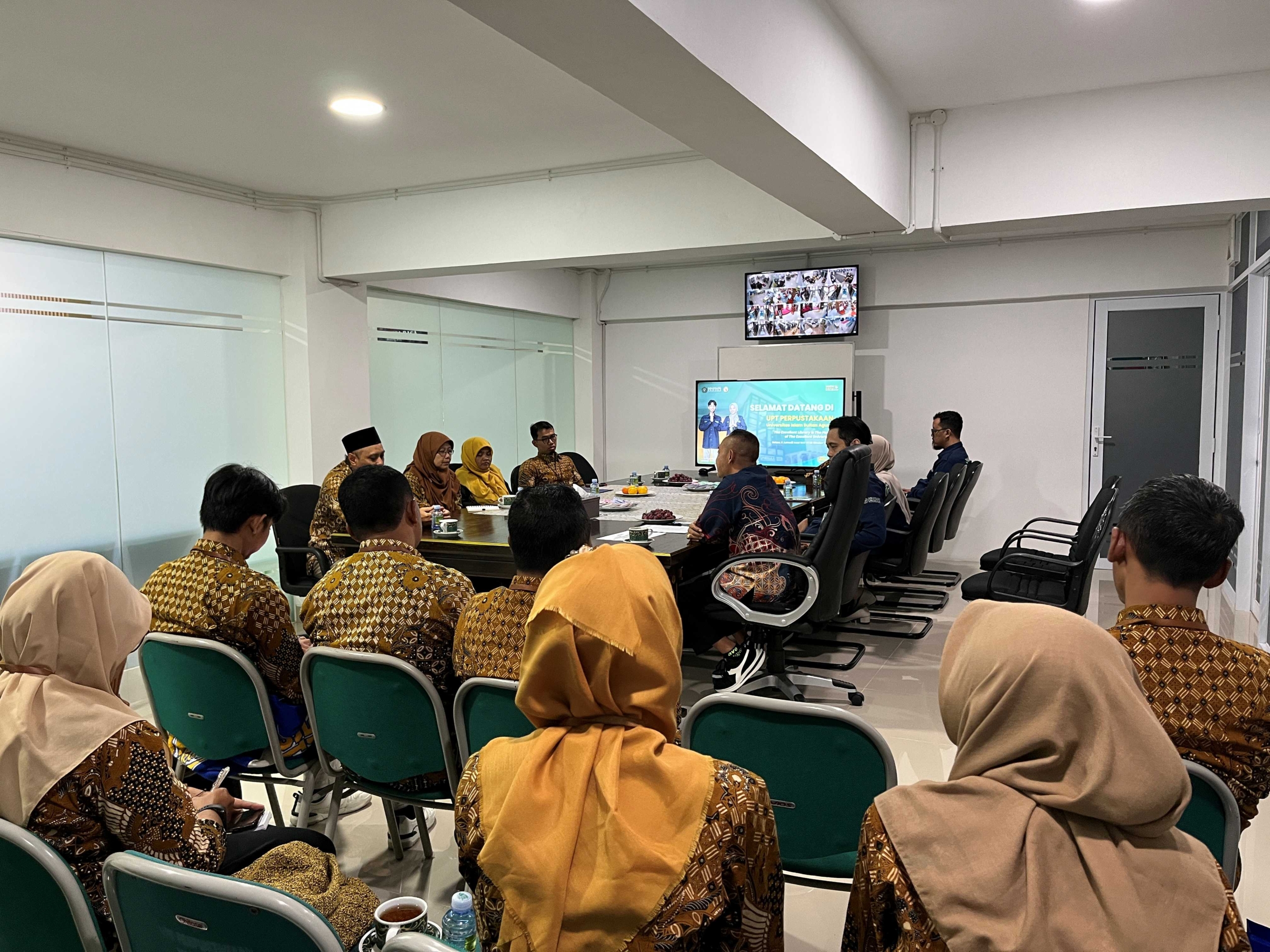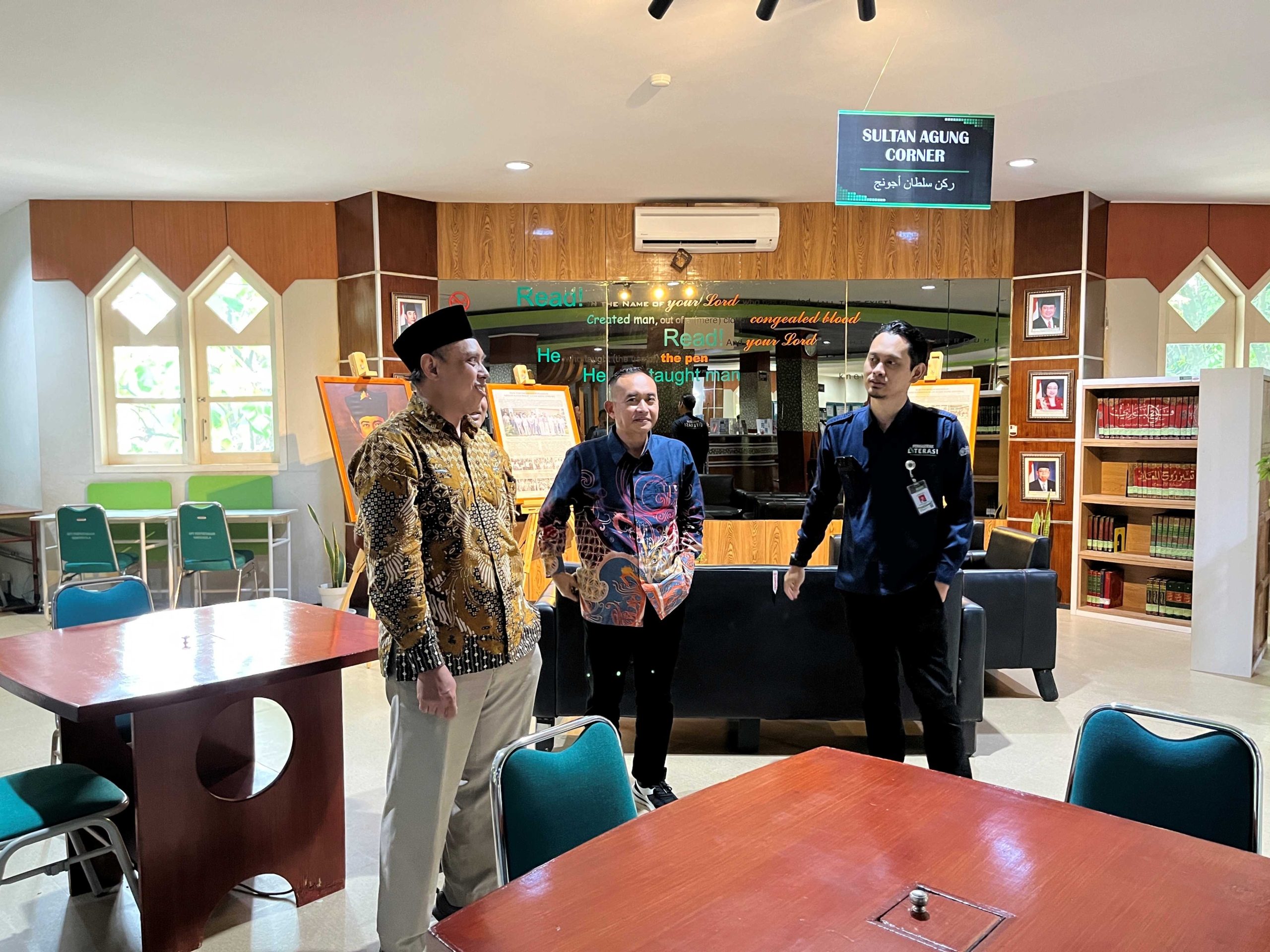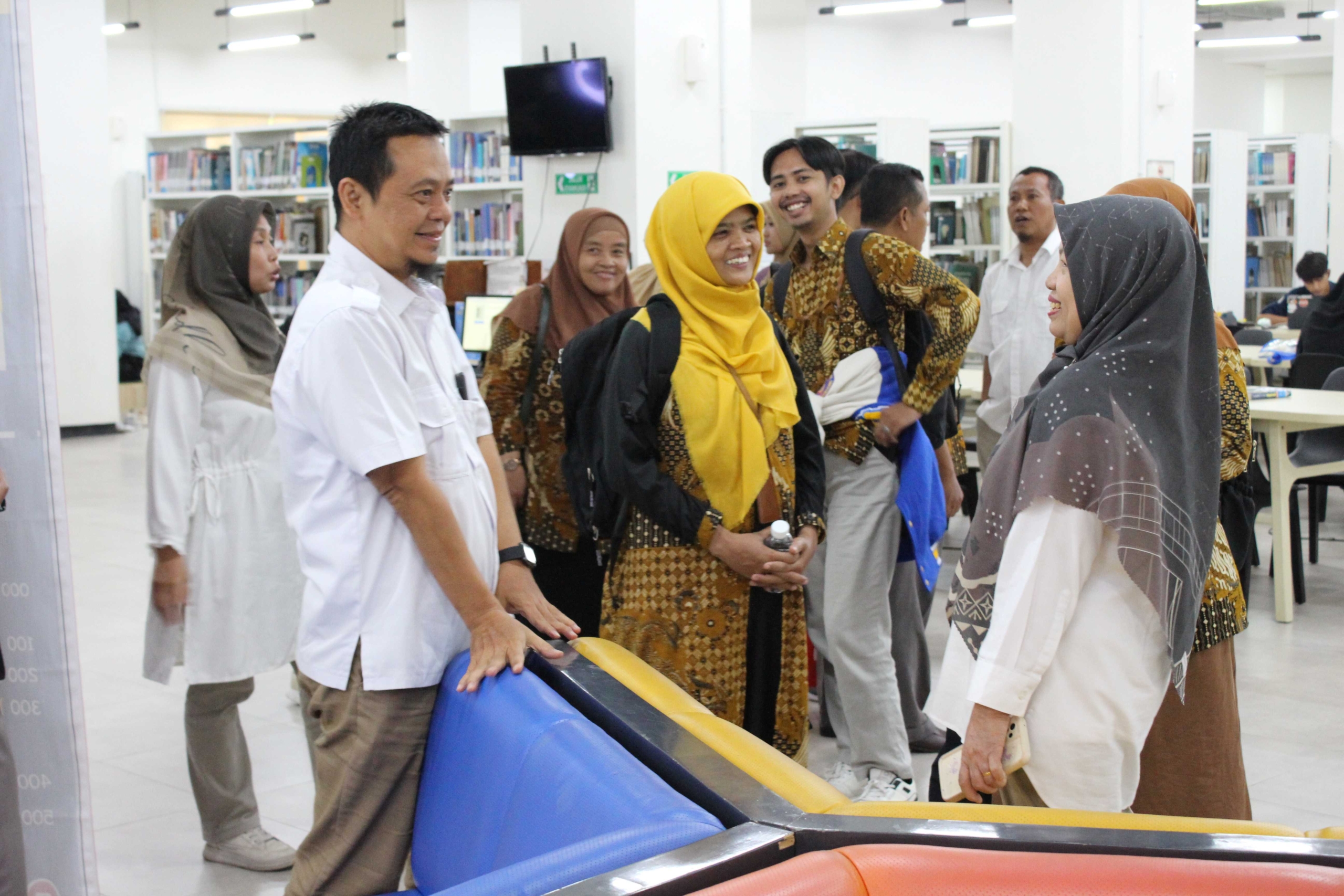 Rombongan melihat tata kelola SDM, layanan sirkulasi, serta fasilitas ruang baca tertata rapi dan nyaman di Perpustakaan UNISSULA. Gedung baru perpustakaan UNISSULA menyediakan ruang smartlab, ruang audiovisual, komputer dan internet, hingga layanan fotokopi dan loker yang mendukung aktivitas pemustaka. Kegiatan pengembangan koleksi dan pelestarian bahan pustaka juga berjalan baik.