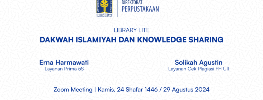 Rasulullah SAW bersabda “bahwa bentuk sedekah yang paling ringan adalah tersenyum”. Senyuman bisa memberikan perubahan yang signifikan, membuat penampilan lebih menarik, mengurangi stress dan mengubah perasaan dari yang kurang baik menjadi lebih baik. Senyum juga menjaga dapat kesehatan, penyejuk rohani serta menumbuhkan ikatan tali kasih sayang dan silaturahmi. Demikian mukadimah yang disampaikan oleh Erna Harmawati saat memberikan tausiyah pada Library Lite edisi Agustus yang rutin diselenggarakan oleh Direktorat perpustakaan Univesitas Islam Indonesia. Pada kesempatan kali ini Erna mengambil tema pentingnya menerapkan budaya 5S yakni, senyum, salam, sapa, sopan, dan santun.